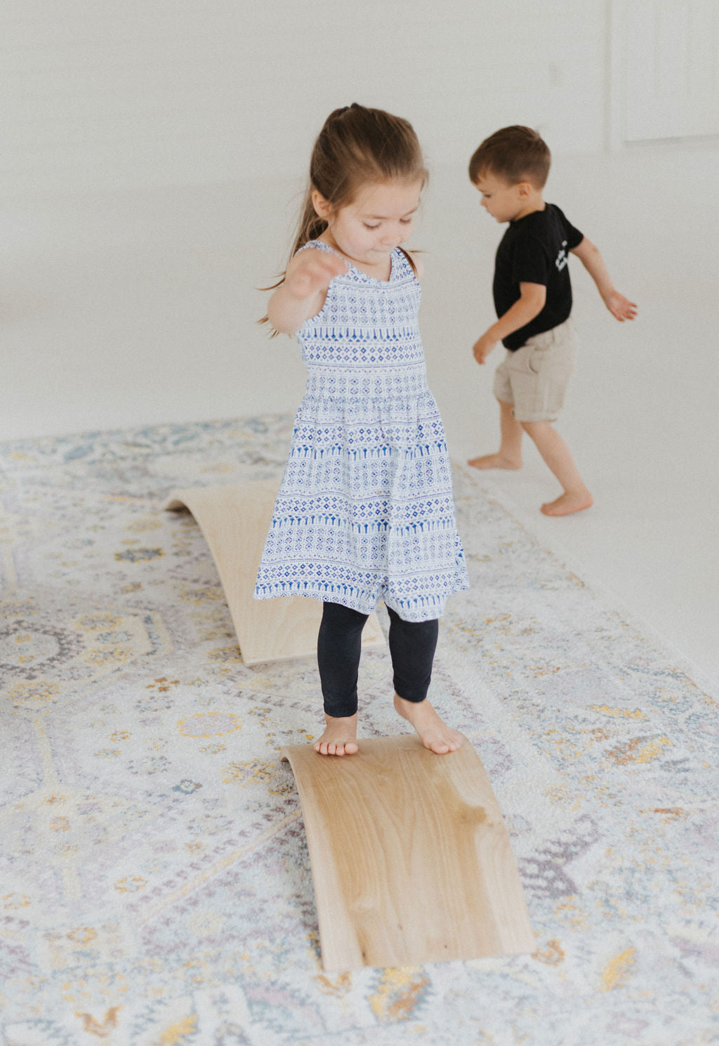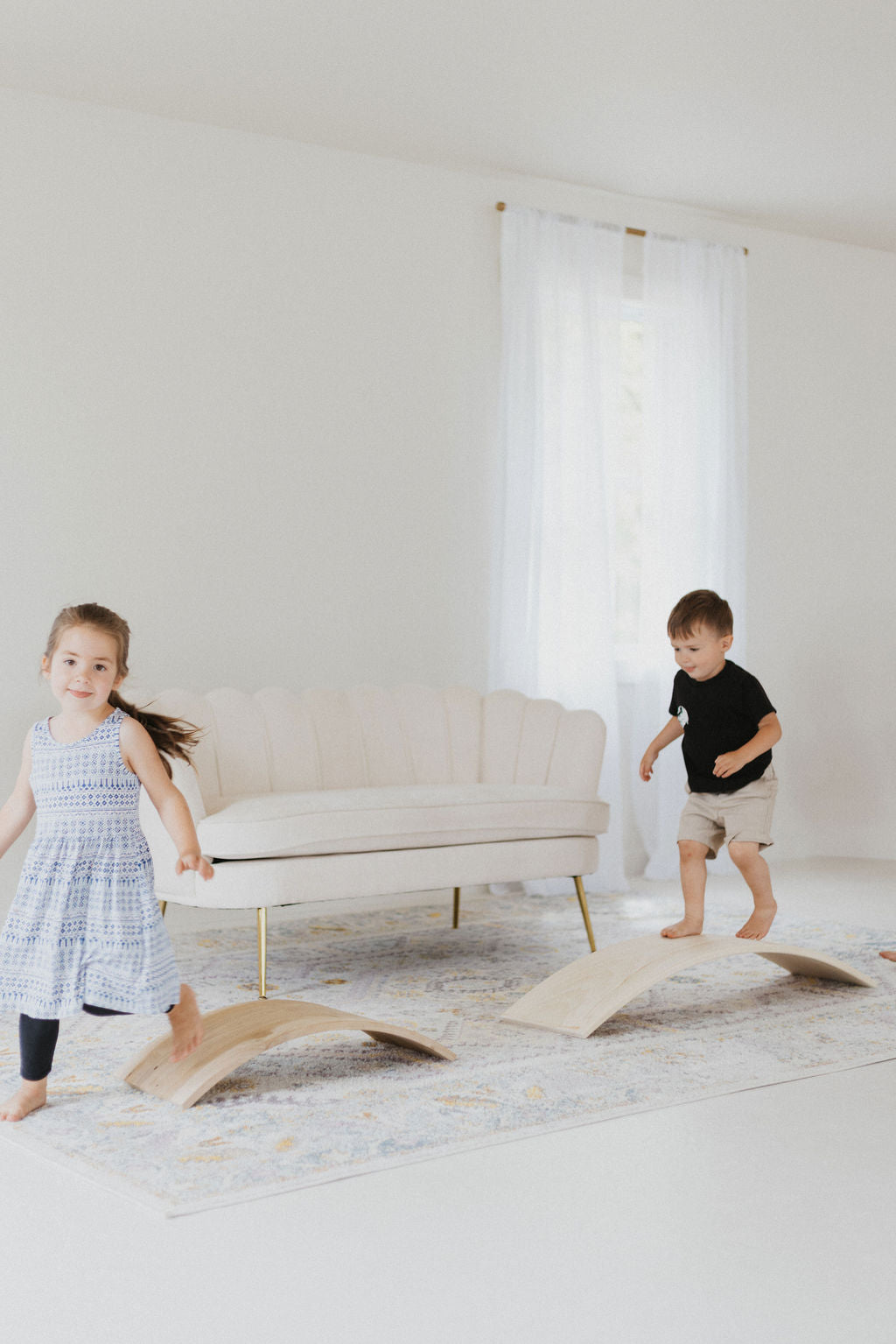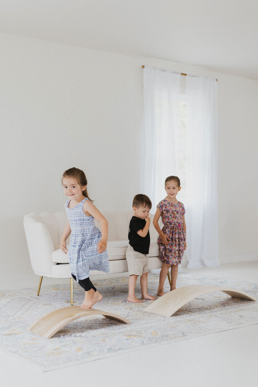 We’re a husband-and-wife team passionate about creating heirloom-quality toys that are beautiful, functional, and made to last. These balance boards are designed to be a staple in your playroom—inviting movement, imagination, and joy.