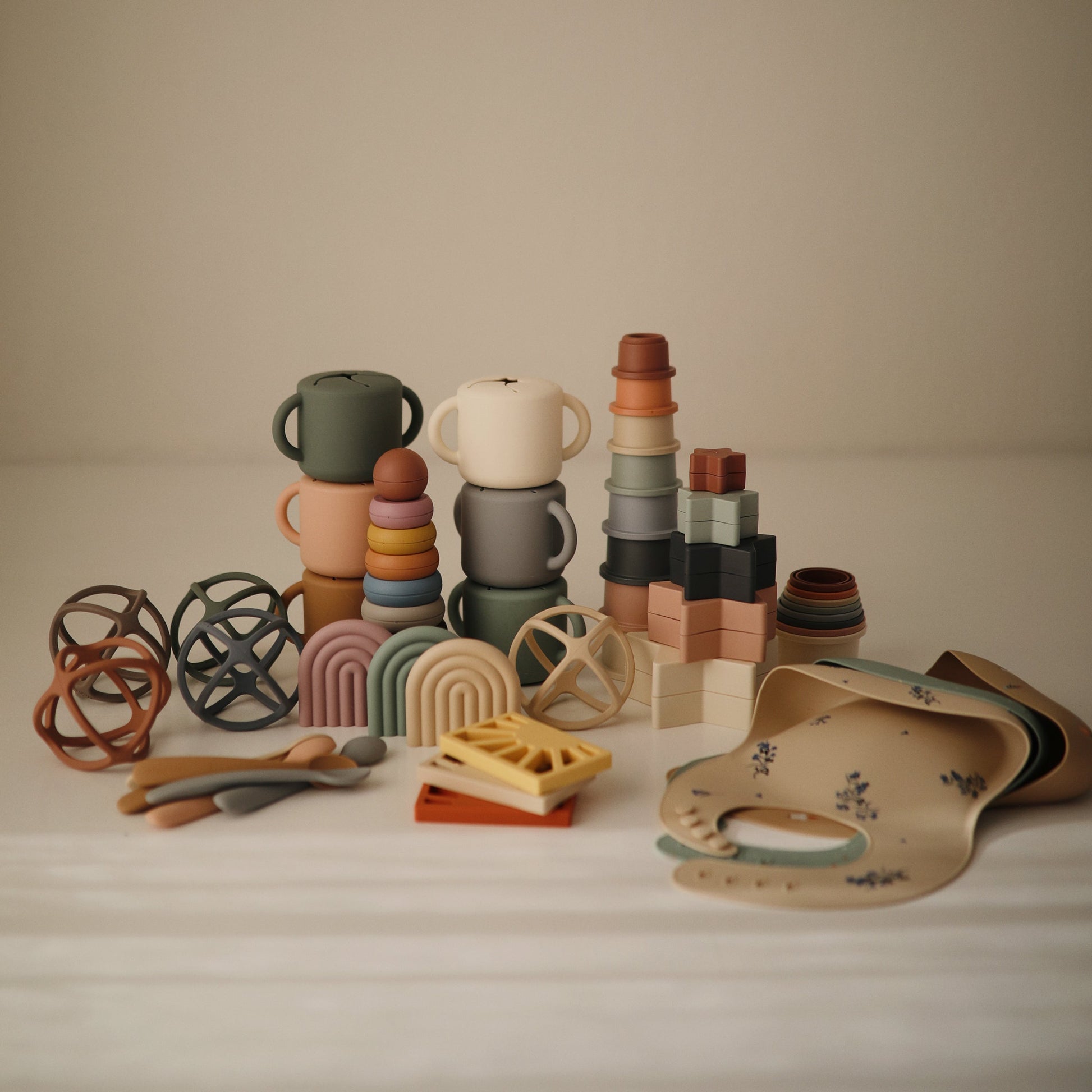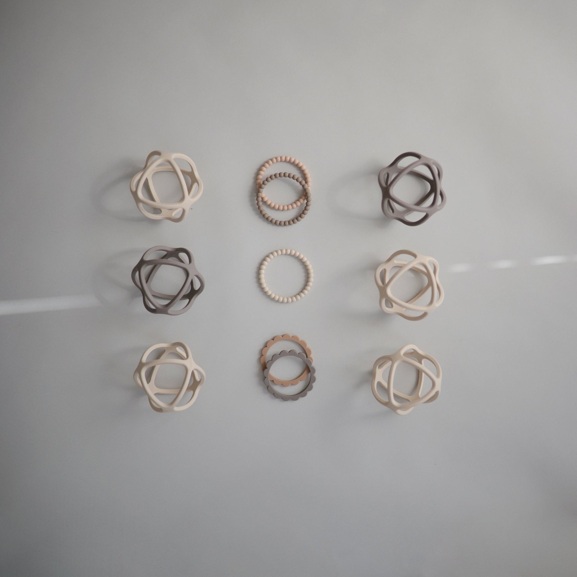 Help soothe your baby's irritated gums with our line of teethers. Made from 100% non-toxic, food-grade silicone, and designed to be easy to grasp by tiny fingers, our teether balls are safe for your baby to use. Their geometric design and sophisticated colors make them a stylish addition to your home.