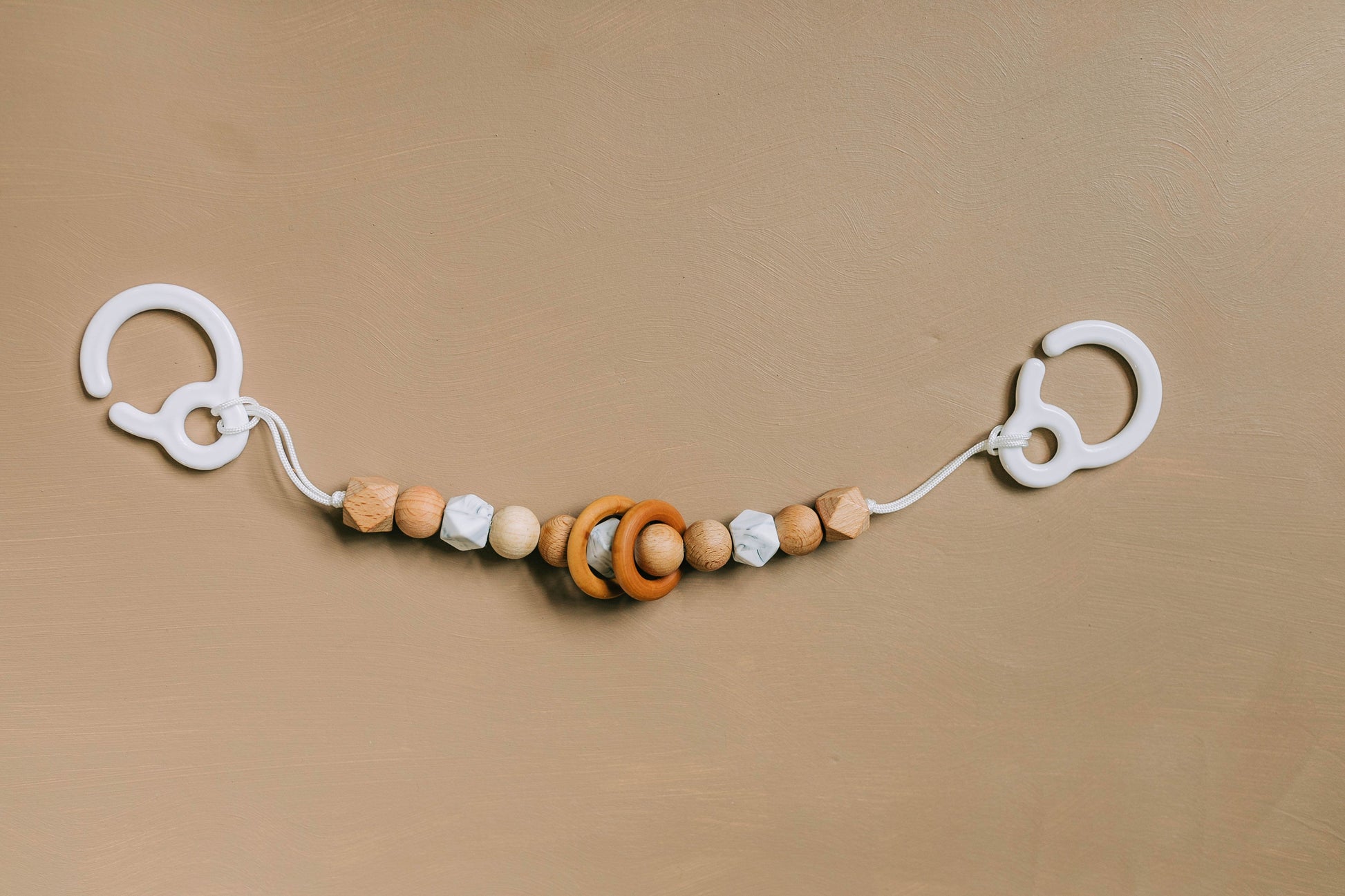 - Made with high quality cord and attached to plastic clips, making it easy to clip on and off of highchairs, strollers, car seats and bassinets!