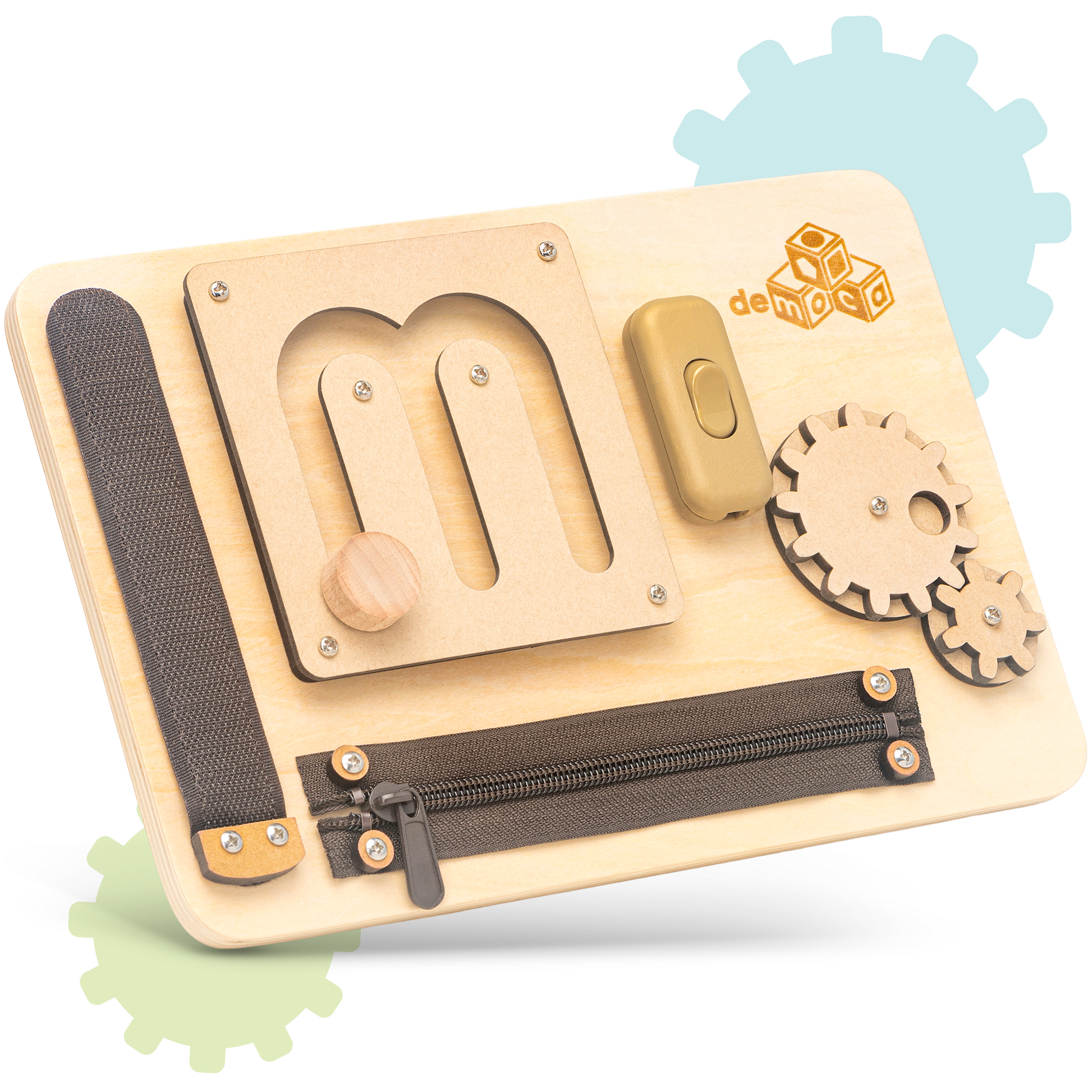 Lay the foundation for essential skills with deMoca Mini Busy Board – from the ability to focus to finger control and handwriting.