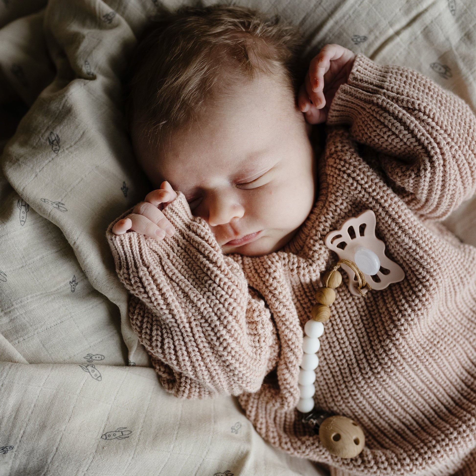 The FRIGG Baby’s First Pacifier set features 4 popular FRIGG styles with different nipple materials and shapes, so parents can easily try out various options to find out which works best for their baby's unique needs. With a variety all in one convenient set, parents can confidently discover their little one’s favorite, making those first soothing moments a little easier. Each pacifier is thoughtfully designed and made in Denmark with comfort and safety in mind.