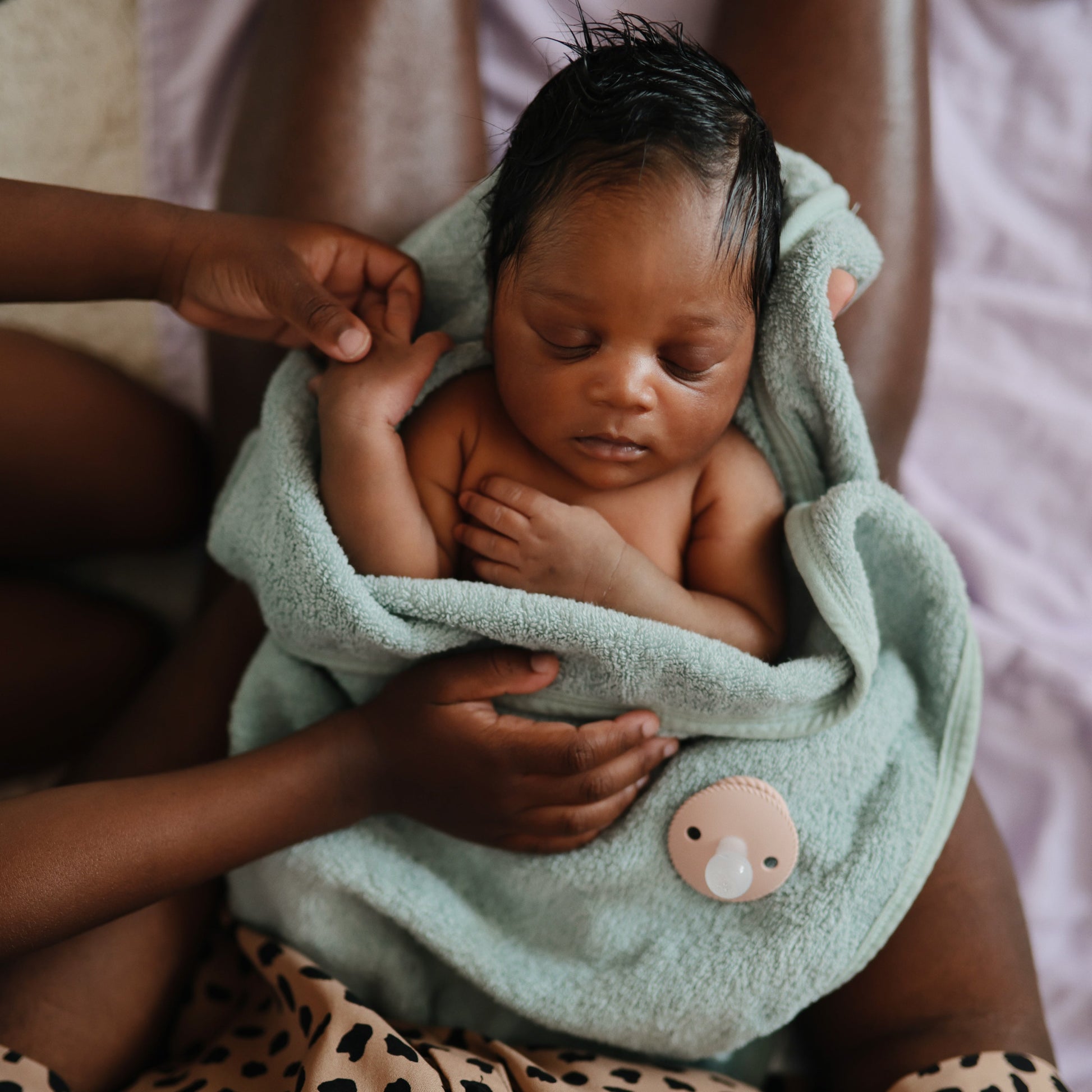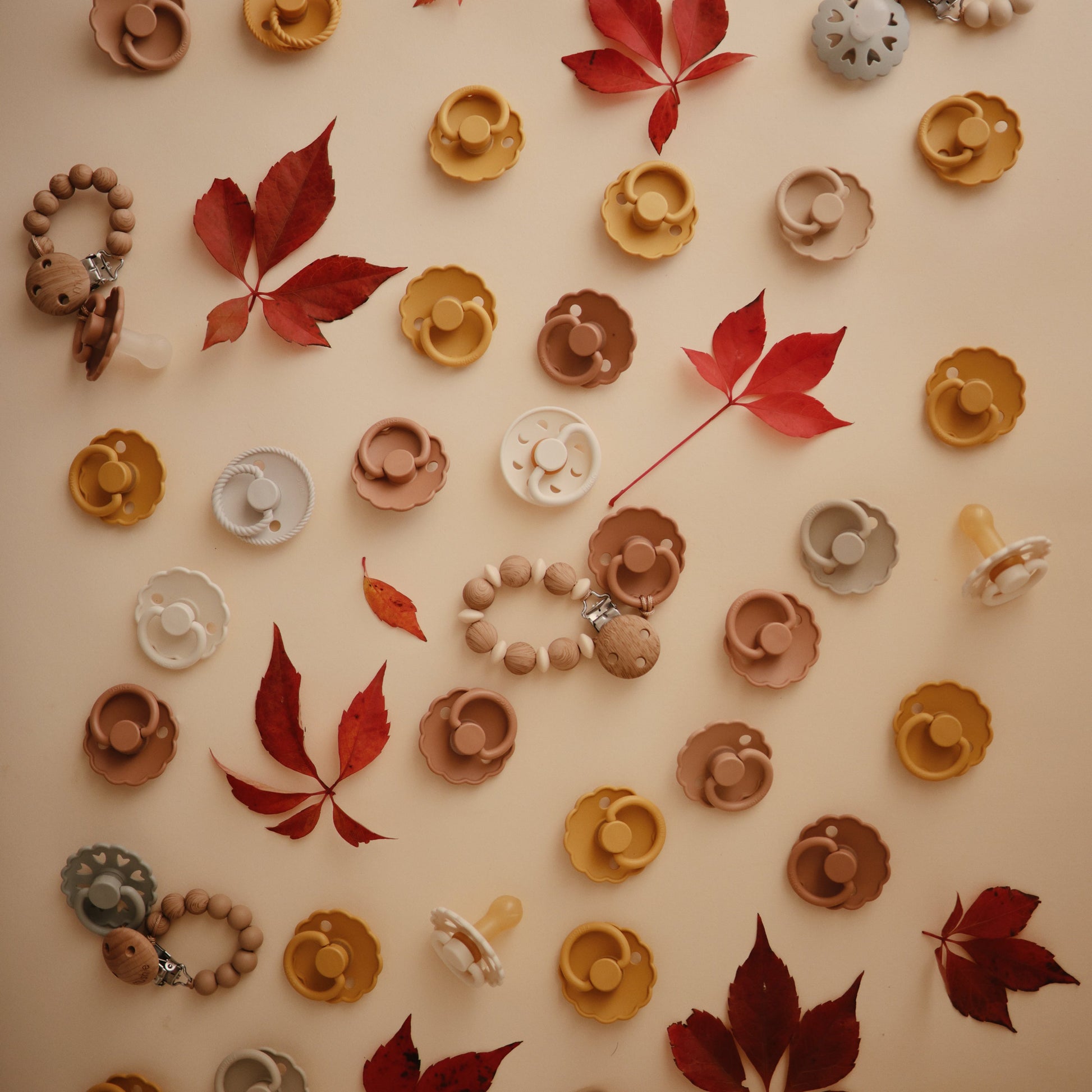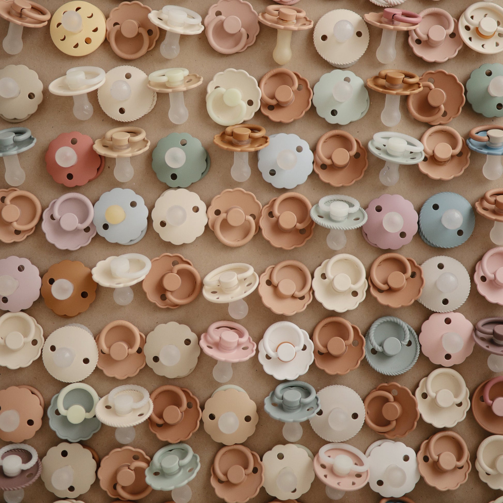 The FRIGG line of Rope silicone pacifiers are thoughtfully designed and made in Denmark for your baby's comfort and safety with an improved SilkySoft™ medical grade silicone nipple and patented Click-Lock® system. The outward curve keeps the pacifier off baby's delicate skin, while air holes and a security handle give parents extra peace of mind. Available in a range of soft colors with entwined rope detailing, FRIGG Rope pacifiers make a beautiful addition to your collection of baby essentials.
