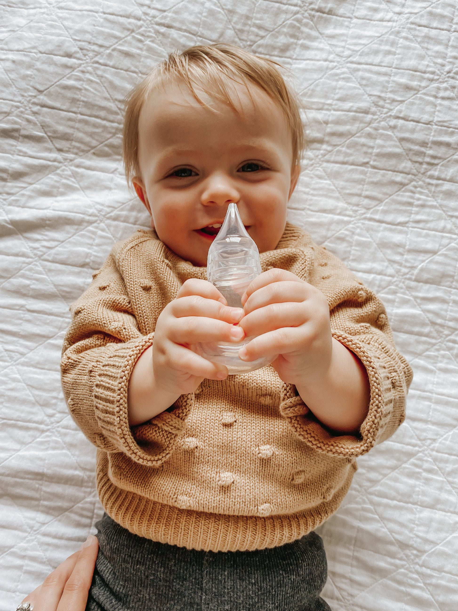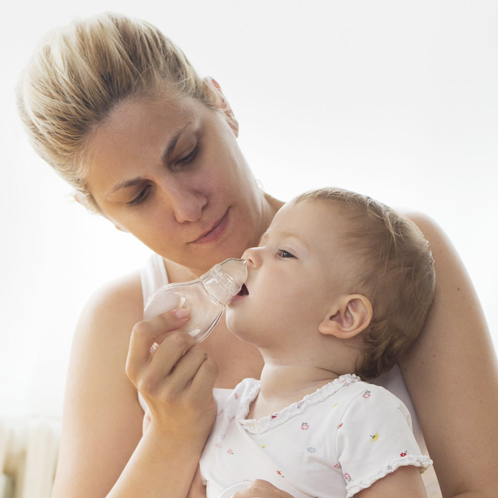 The arc tip is perfect for tiny noses up to 12 months old, while the cone tip is designed for bigger children (12 months and older). Our Bulb Syringe is also transparent, so you can see how much mucus has been collected, as well as being super lightweight. It's portable and perfect for any snotty emergencies while you and your little one are out and about!