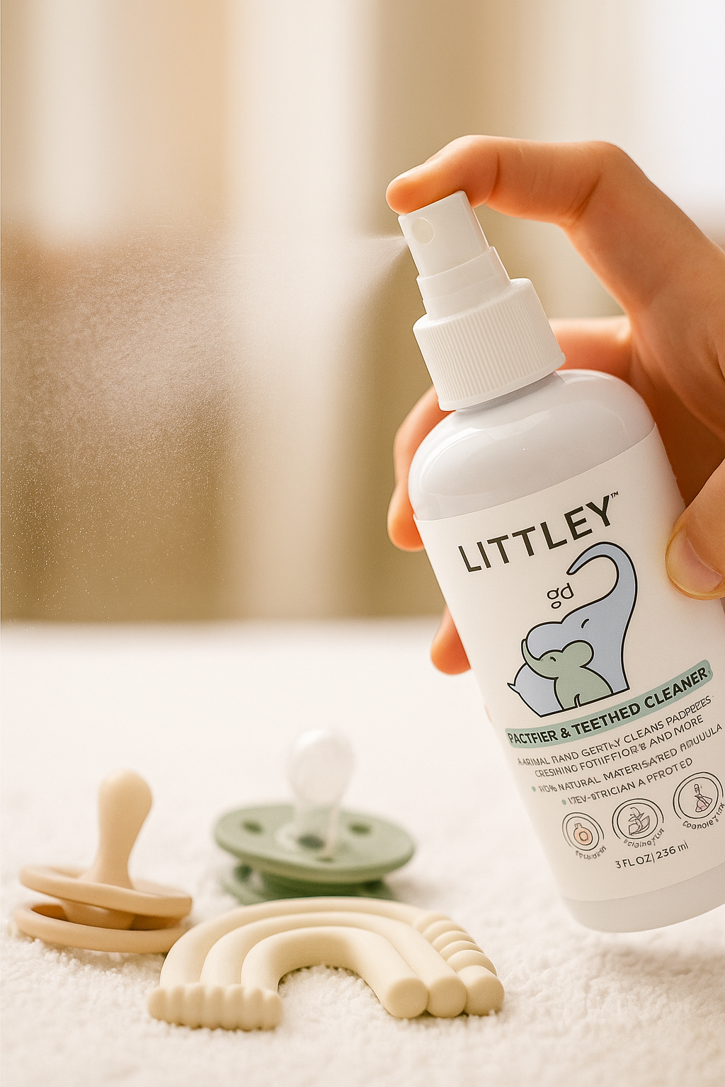 Our Pacifier & Teether Cleaner gives parents a quick, non-toxic way to clean the things that go straight into baby’s mouth. Powered by pure hypochlorous acid and 99% water, this gentle, pediatrician-approved formula removes residue, freshens surfaces, and calms irritation without alcohol, fragrance, or harsh chemicals. Safe for newborns and perfect for pacifiers, teethers, bottles, high-touch toys, and on-the-go messes.
