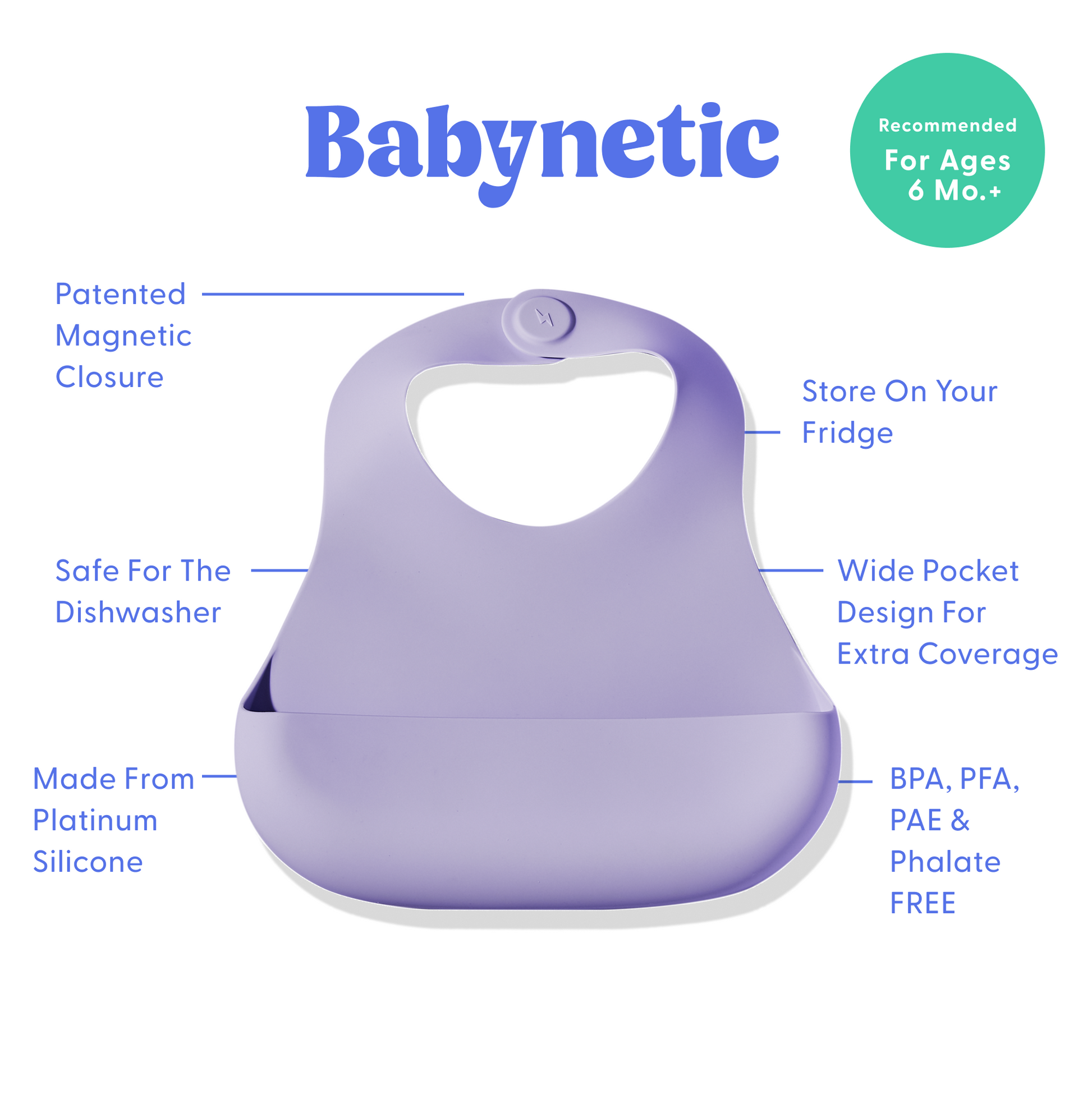 The First-Ever Magnetic Silicone Bib has arrived. Our patented magnetic closure makes it easy for parents to snap on — yet tough for little ones to tug off. It stays put through mealtime mayhem and stores on your fridge, always within reach. Perfect for wiggly babes, DIY minded toddlers, and caregivers who are tired of struggling with silicone buttons.