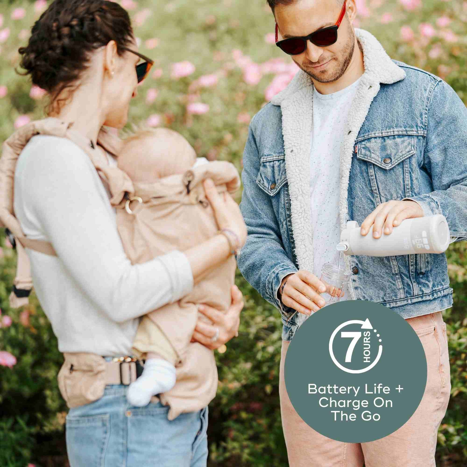Designed for convenience, it warms up to 11.5 oz of liquid to your preferred temperature (98°F–122°F) with precision. Need it fast? Warm 6.7 oz to 98°F in just 5 minutes. Once ready, the milk or water stays perfectly warm for up to 7 hours. Staying out longer? The 3ft USB-C charging cable plugs into outlets, car ports, or even your laptop.