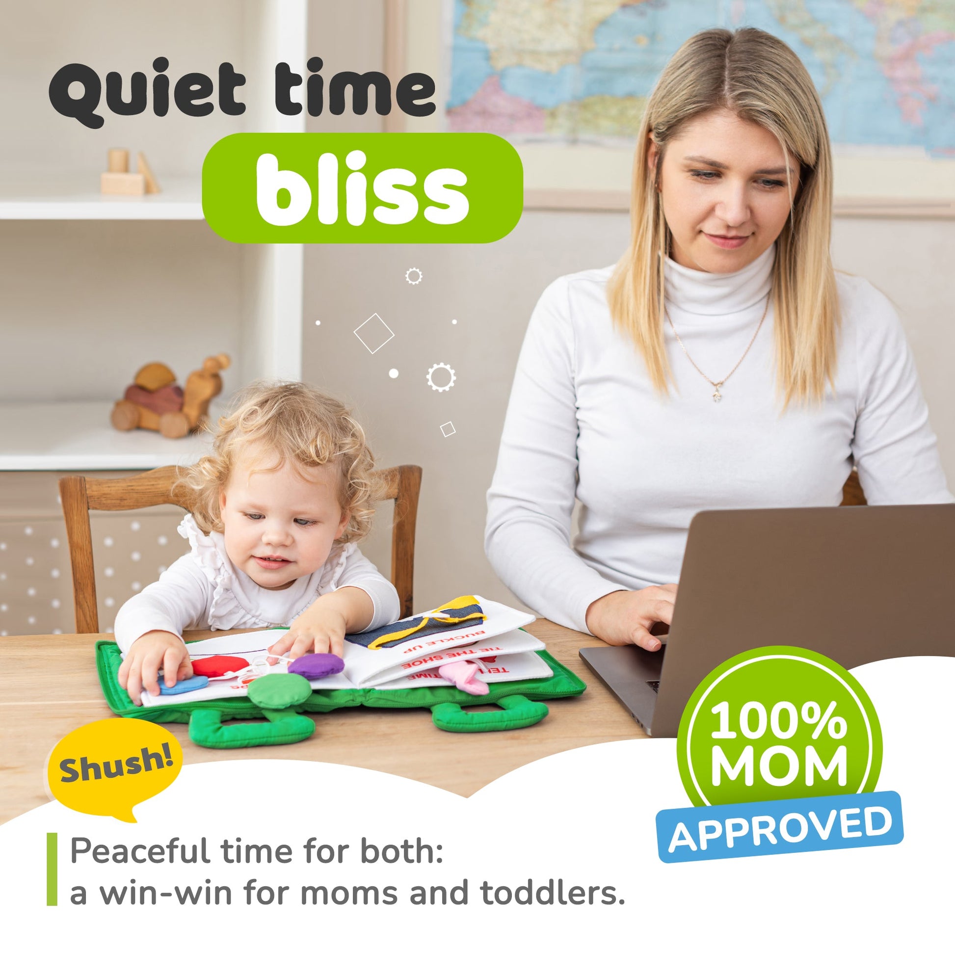 TODDLER LEARNING TOYS - Features 9 learning activities for 3 year olds kids to develop their fine motor skills. Pleasant soft baby cloth book touch and feel, yet durable and sturdy sensory toy