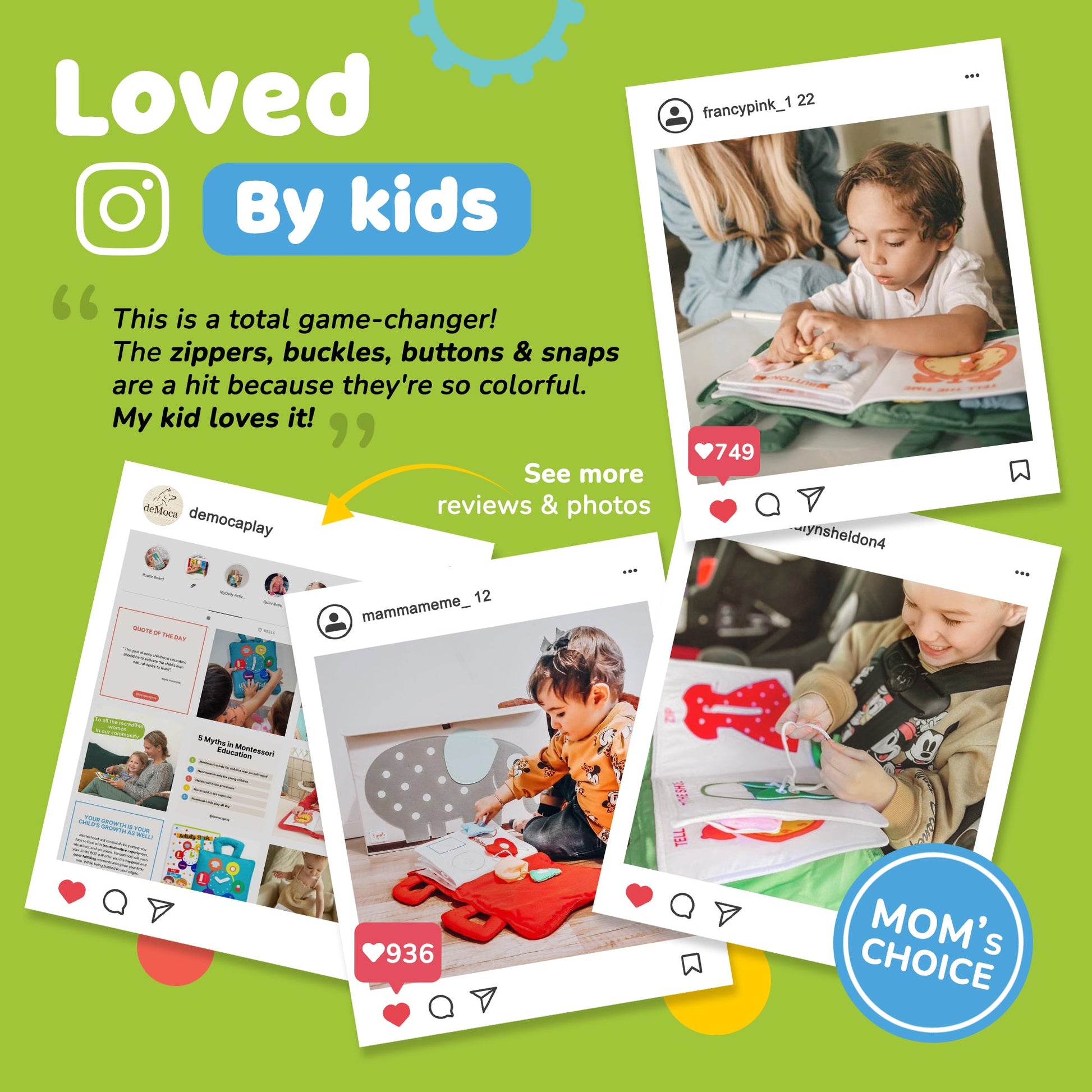 MACHINE WASHABLE – deMoca sensory book toddler toy, comes with a zippered washing bag to keep your toddler travel toys always clean, retaining its shape and quality.