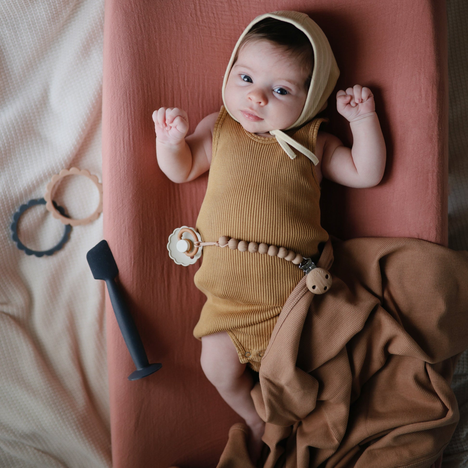 Made from soft, organic cotton, our ribbed baby blanket is a gentle companion for your little one from their very first moments and beyond. The lightweight, ribbed-knit fabric provides a breathable layer of warmth, perfect for cuddling, feeding, and more. Designed for everyday use, this versatile blanket is the perfect go-to for snuggles and comfort anytime.