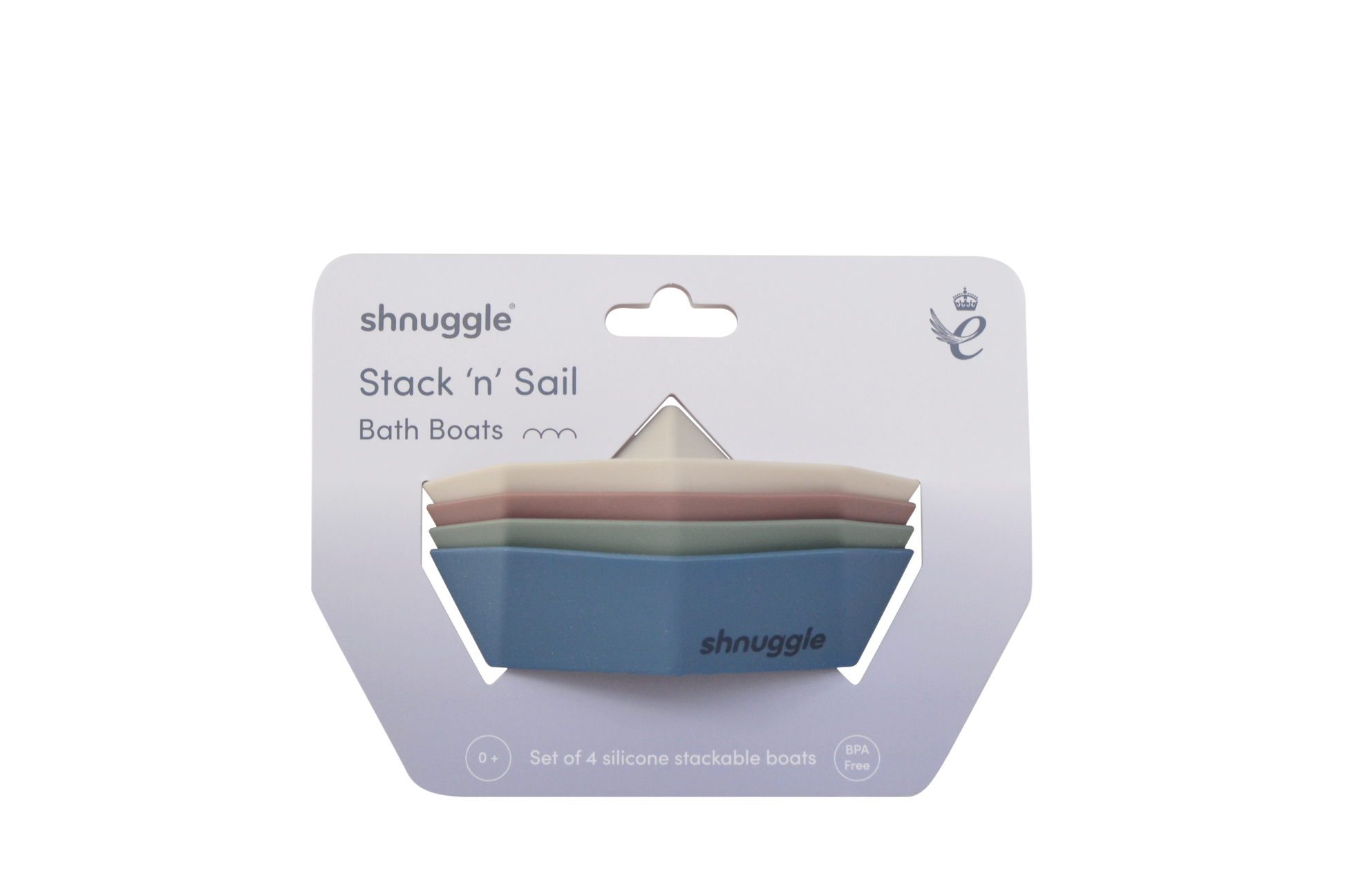 Set of 4 silicone stacking bath boat toys for lots of imaginative play at bath time from baby to toddler and beyond.