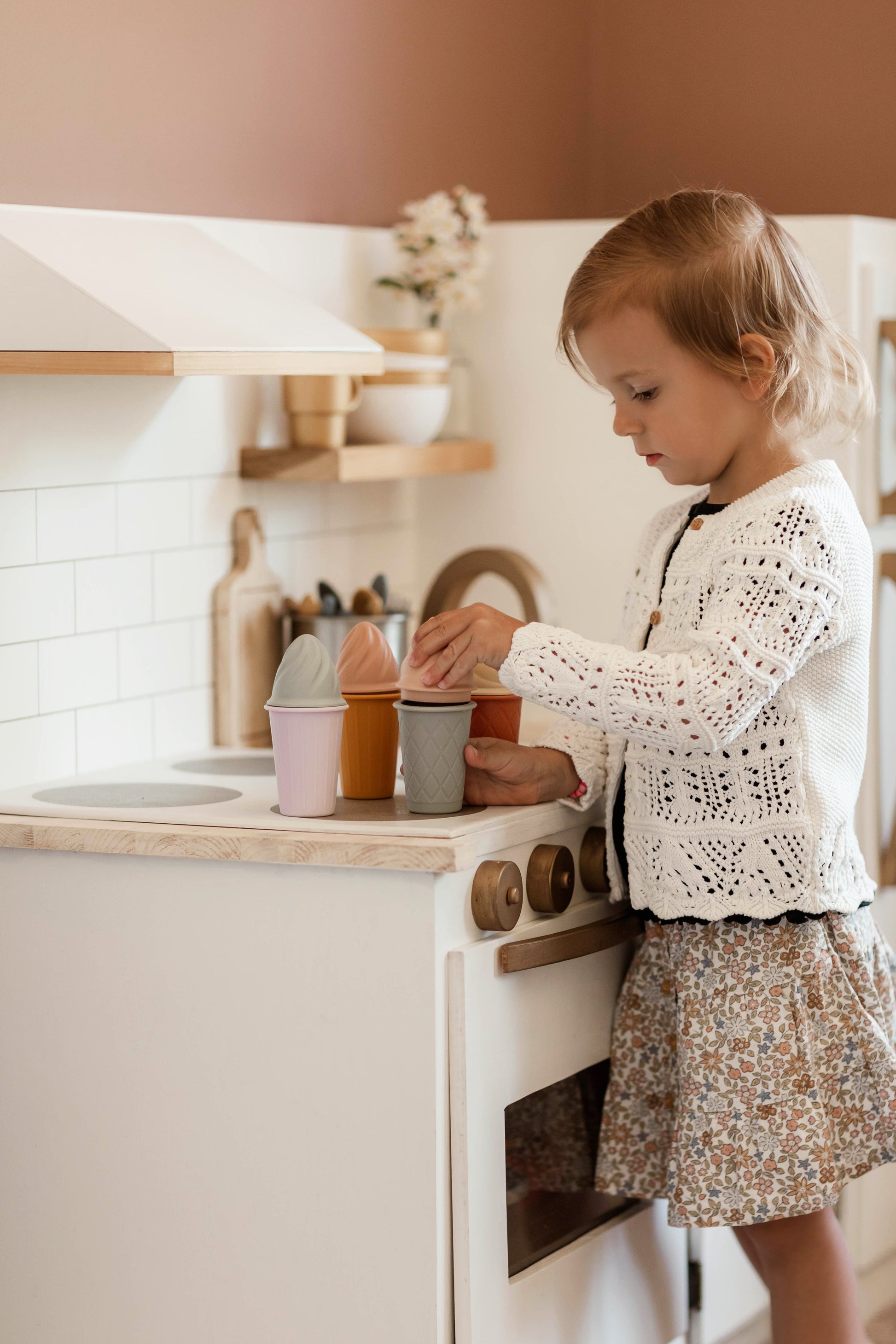 These adorable, unbreakable, and super easy-to-clean ice cream cones are the perfect addition to your childâs playtime adventures! Whether it's scooping pretend treats in the play kitchen or making sandy sundaes at the beach, these toys are built to handle it allâmess and all.