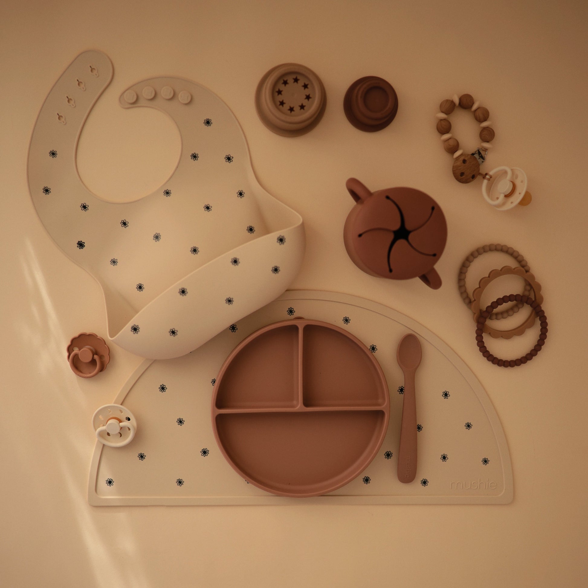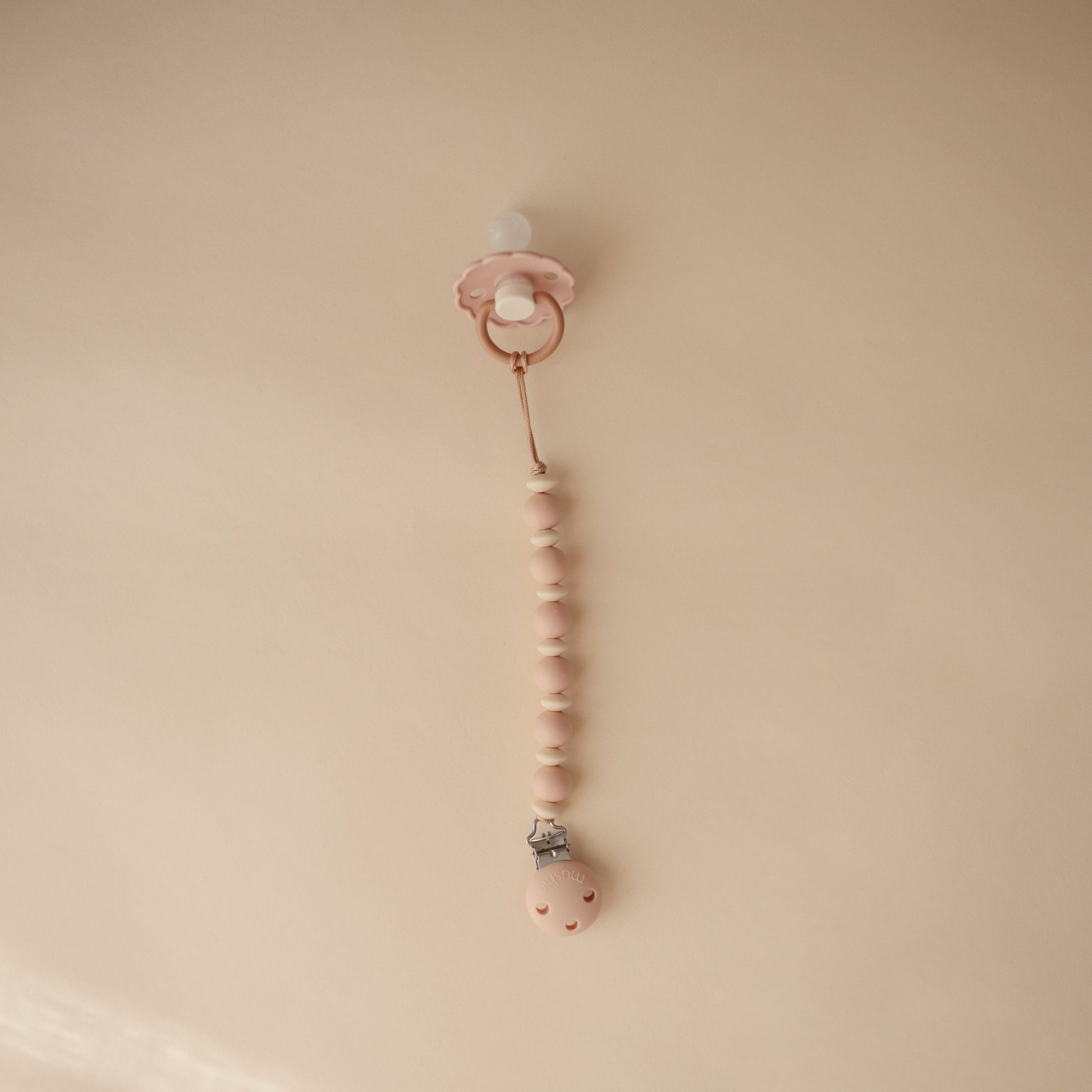 The Mushie silicone pacifier clip offers durability, function and simplicity to families on-the-go. Made from 100% food-grade silicone, our clip features a silicone clasp that brings a modern take to a traditional favorite. With two sizes of beads stacked in a simple pattern, the Luna clip is sure to become a favorite accessory for parents and littles alike. The clip is easy to clean and helps keep soothing items in reach for little ones.