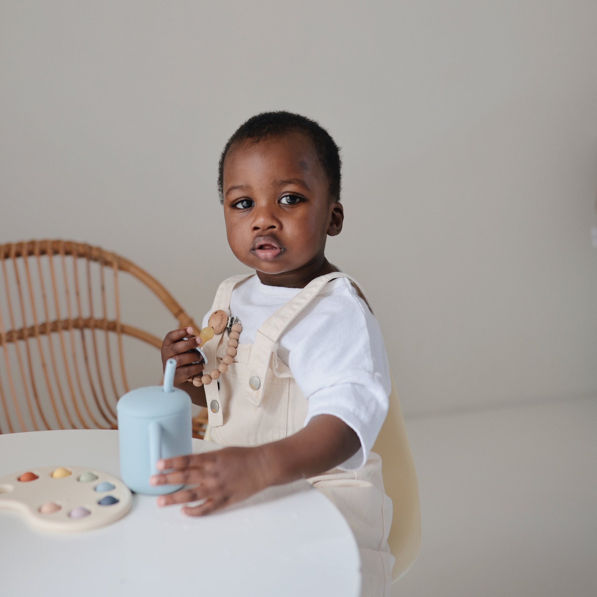 Put a lid on spills and messes with a sophisticated training cup designed for little hands and beautiful homes. Made from 100% food grade silicone, this minimal cup comes with a removable lid and a gentle straw for baby gums and toddler teeth. Build up fine motor skills and start young feeders on their transition journey from bottle to cup.