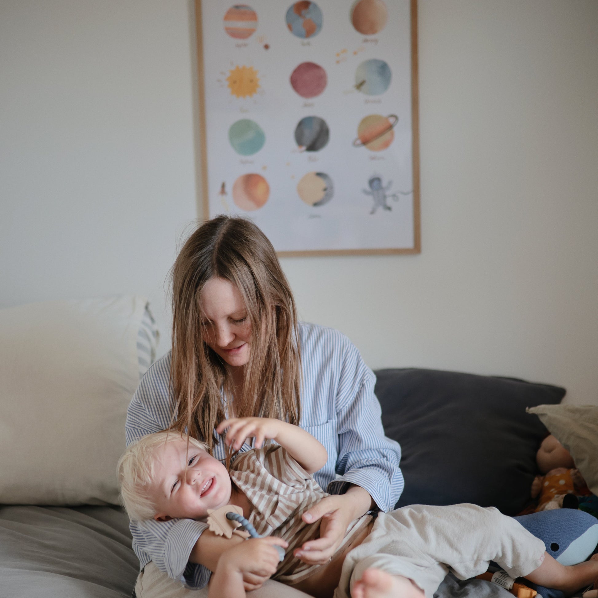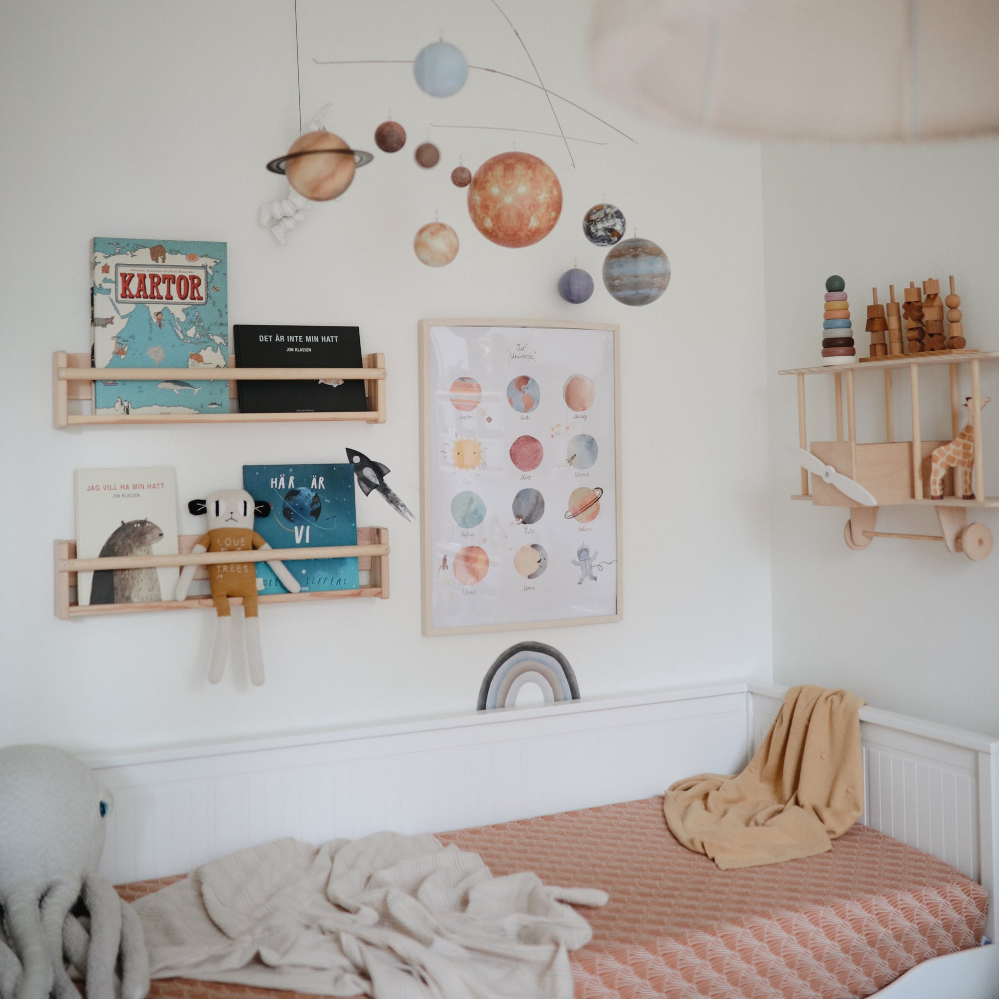 Help your child explore the solar system with this charming and beautifully illustrated poster. Designed in Sweden, this poster is one of a series of prints that combine whimsical themes and soft colors with modern design.